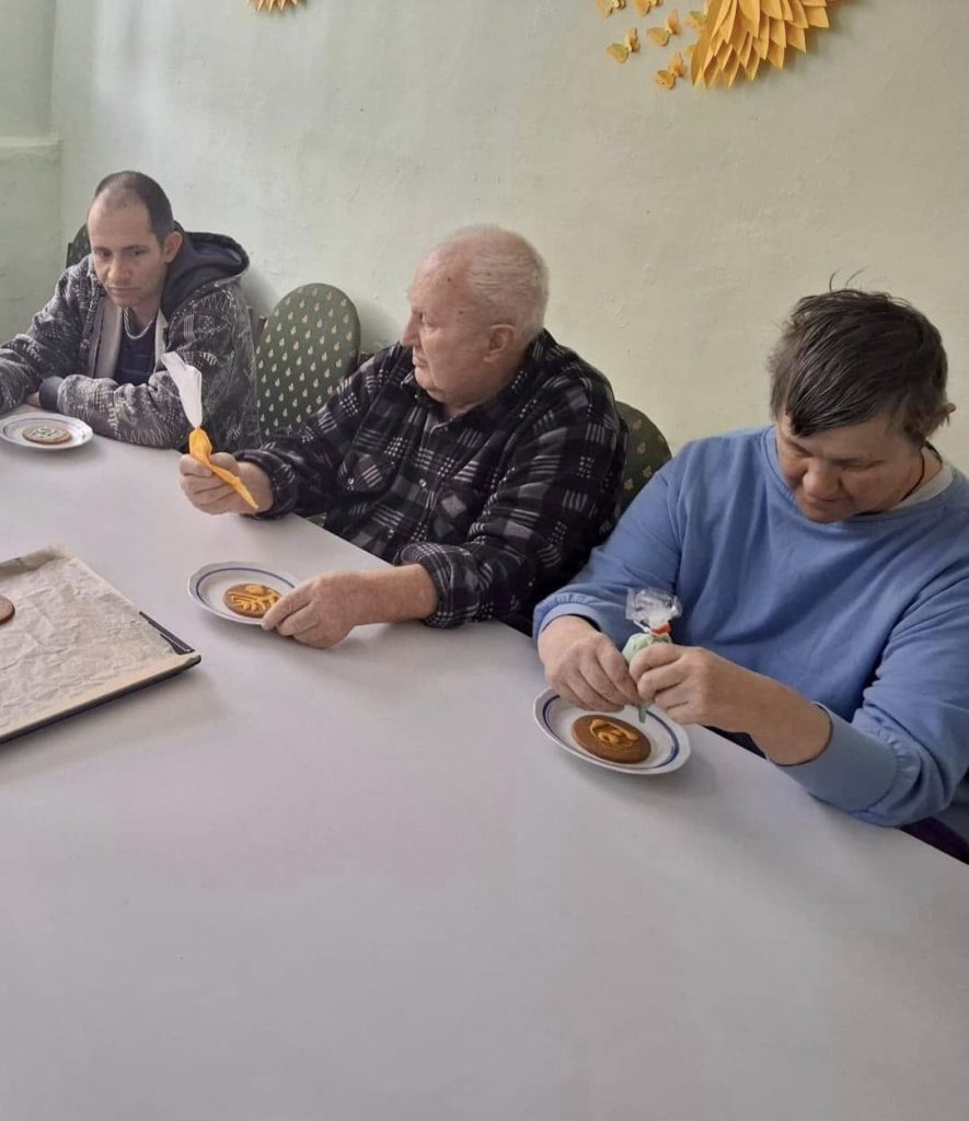 Ziemassvētku laikā pie mums bija ieradušies mākslinieki, gan paši bijām mākslinieki. Iemītnieki Ziemassvētku koncertā rādīja iestudētu lugu, skaitīja dzejoļus, spēlēja uz akordeona.